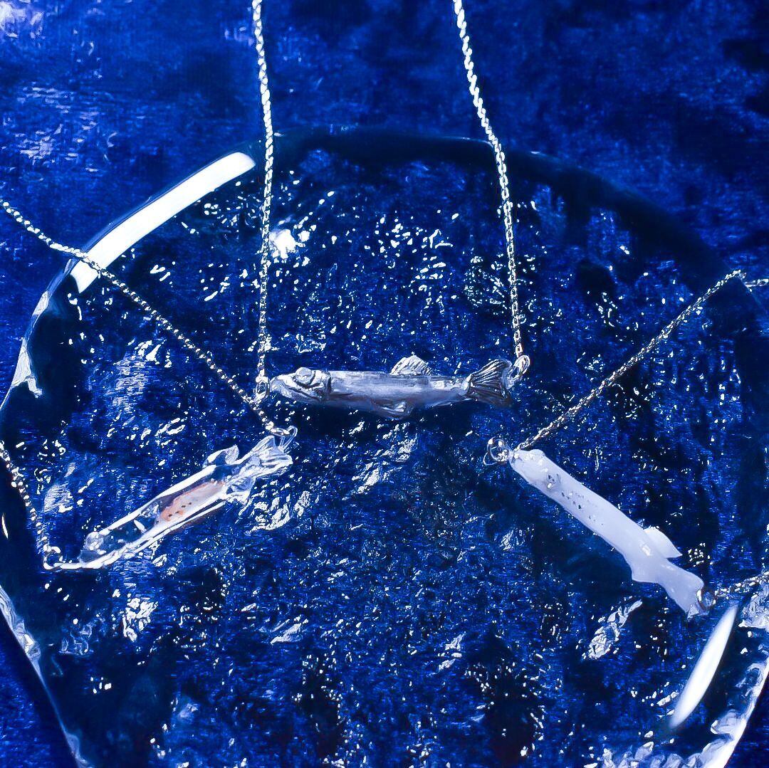 おいしいシラスとその親、カタクチイワシをネックレスに仕立てました。